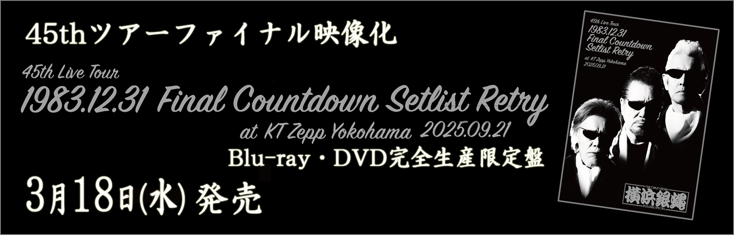 - 2025年12月25日NEW T.C.R.横浜銀蝿R.S. デビュー45周年集大成!地元横浜熱狂ファイナルライブがいよいよ映像化!Blu-ray&DVDで完全生産限定盤としてリリース!