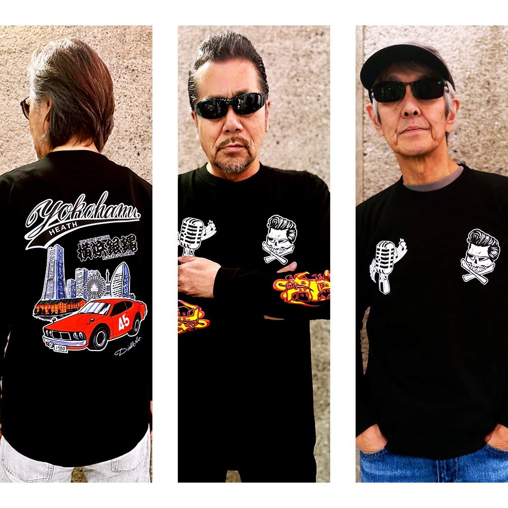 「横須賀Baby」「ぶっちぎり」で時代をぶった切った横浜銀蝿。いまも色褪せないロック魂を宿す彼らとのコラボ第二弾が完成。銀蝿のスピリットとHEATHのデザインが融合した、まさにファン必携の一枚です。