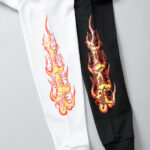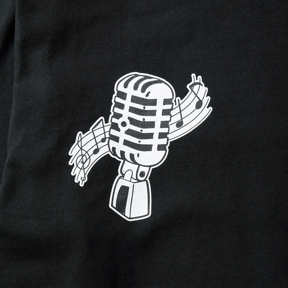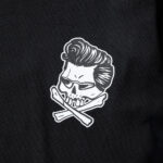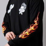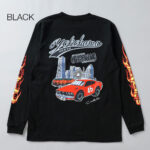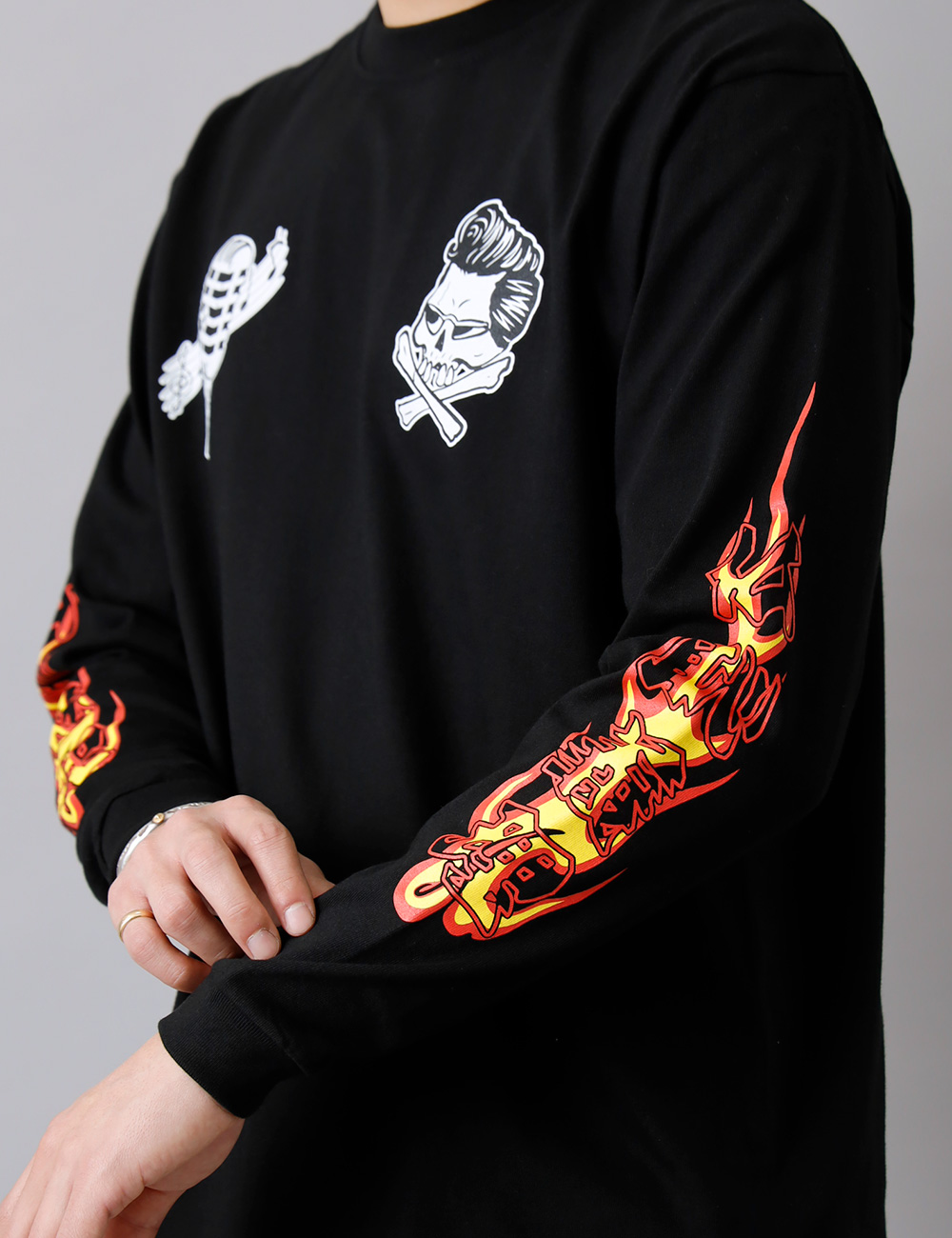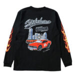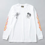 # 袖にはファイヤーパターン&“仏恥義理”、フロントにはガイコツマイクとガイコツくん