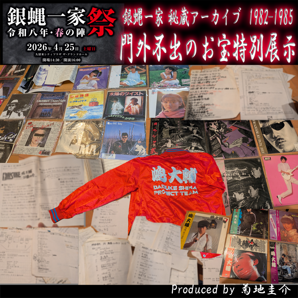 2026年2月19日 更新4月25日に久留米で開催される『銀蝿一家祭 ~令和八年・春の陣~』では、ロビーエリアにて特別展示『銀蝿一家 秘蔵アーカイブ』を同時開催いたします。